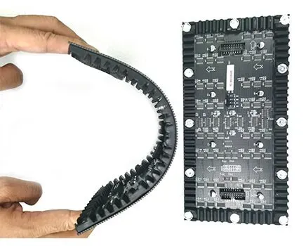 Usually, in the case where the curvature of the display screen is small and the display form is more complicated. the seam and the flatness are not well solved, which results in display inconsistency. But the flatness of the Flexible LED Screen is good. and since the silicone is used. it has a soft hand feeling and there is no protrusion even after a finger scratch.